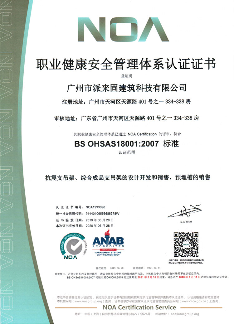 职业健康安全管理体系认证证书