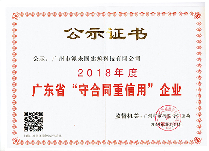 2018年度广东省“守合同重信用”企业